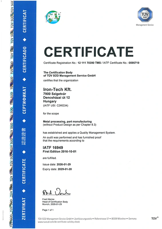 Mit über 25 Jahren Erfahrung im Bereich der präzisen Metallverarbeitung hat sich IRON-TECH als vertrauenswürdiger Tier-2-Zulieferer für internationale Partner etabliert. Unser konsequentes Engagement für Weiterentwicklung und Innovation hat uns zu einem führenden Unternehmen in der Metallbearbeitung und Komponentenfertigung gemacht. Durch erstklassigen Service sind wir zu einem verlässlichen Partner für globale Unternehmen in der Automobil- und Maschinenbauindustrie geworden.
