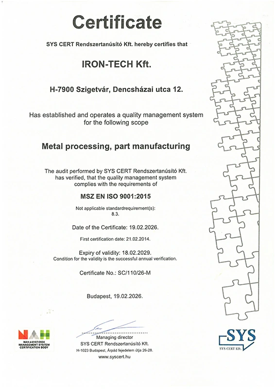 Bei IRON-TECH stehen Sicherheit und Qualität an oberster Stelle. Unser Management ist voll und ganz darauf ausgerichtet, außergewöhnliche Qualitätsstandards zu gewährleisten und maximale Kundenzufriedenheit sicherzustellen.